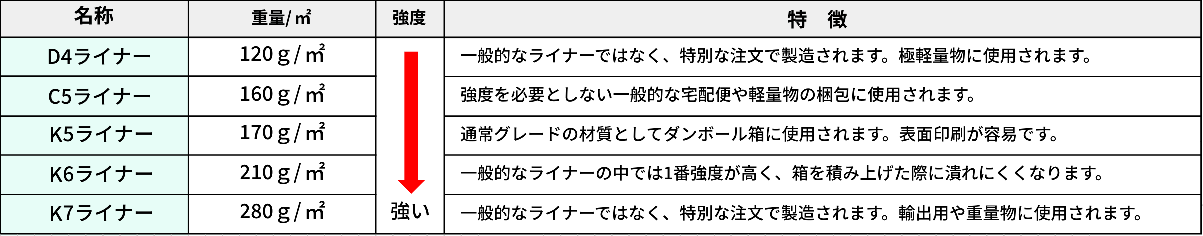 表・裏ライナー種類