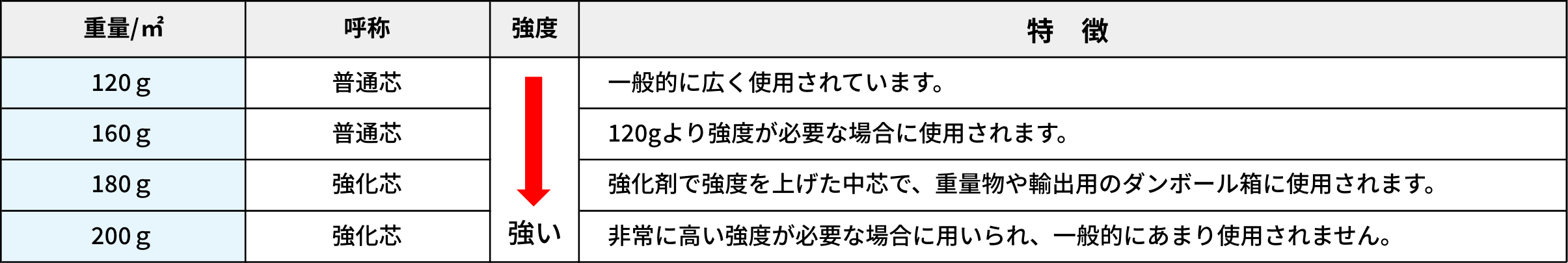 次に内容物の重量や運送条件を考慮し、ダンボールを構成する「構造(何層か)」「紙の種類」の組み合わせを決定します。